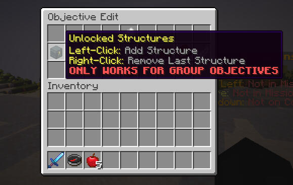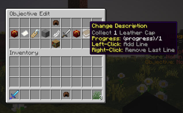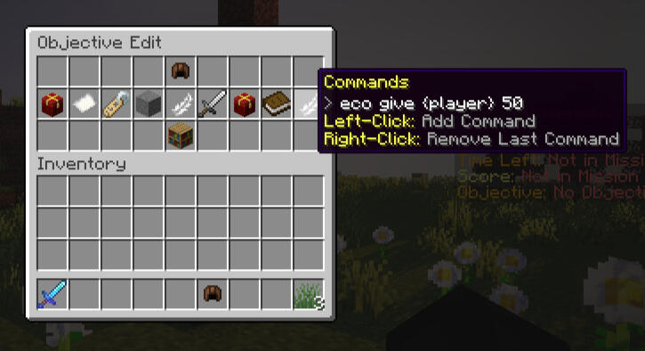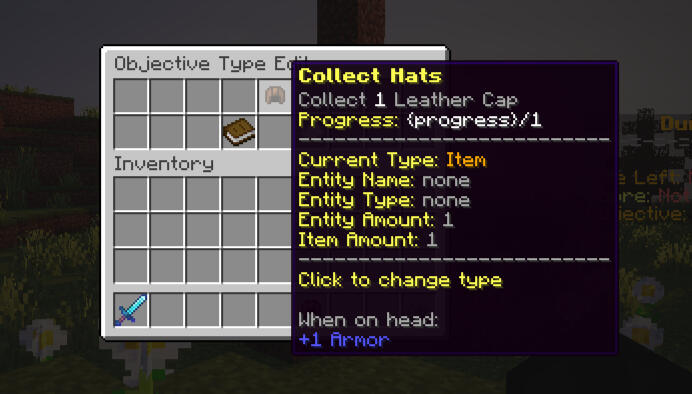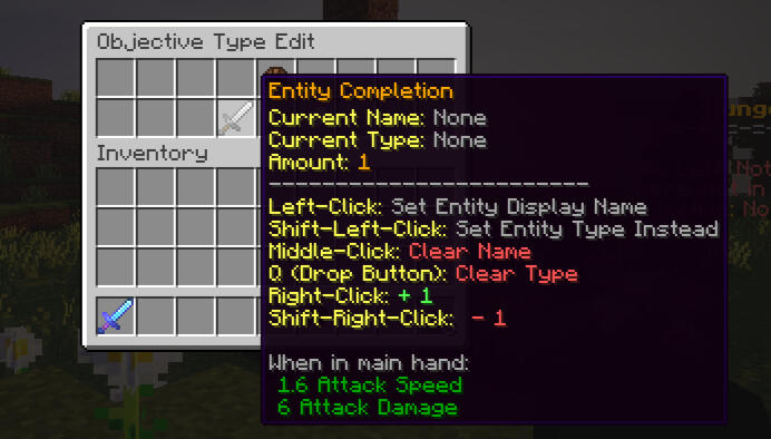 Objectives can be completed in three ways: Entity kill, Item collection, command