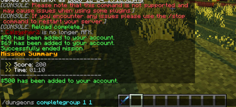 '/dungeons completegroup <dungeon> <mission>' to manually complete current group objective